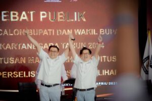 Kutip.id, Kutai Kartanegara – Paslon nomor urut 01, Aulia Rahman Basri dan Rendi Solihin, menunjukkan kekompakan dan semangat yang kuat dalam debat publik Pemungutan Suara